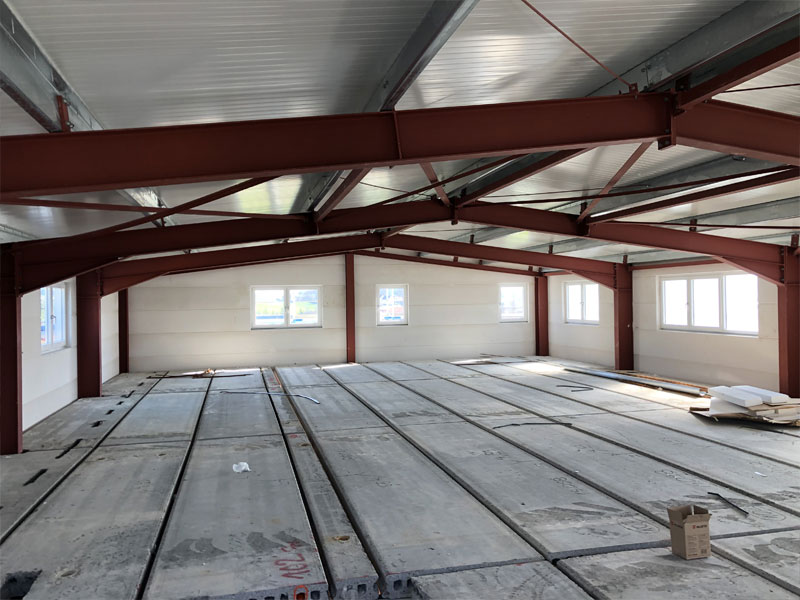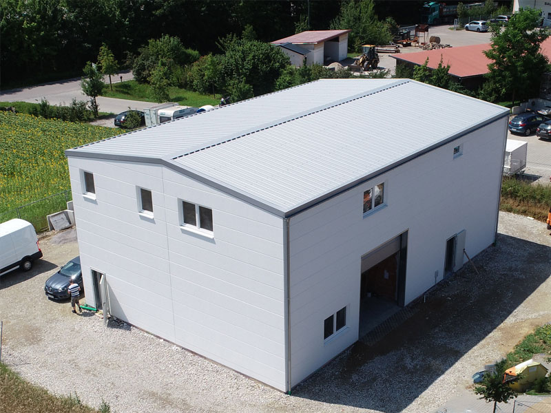 45 mm dick, Blechdicke 0,9 mm mit Mineralwoll-Dämmung und Stahlverstärkung, 2-seitig gewälzt, verzinkt und grundiert-pulverbeschichtet in Grauweiß (in Anlehnung an RAL 9002)